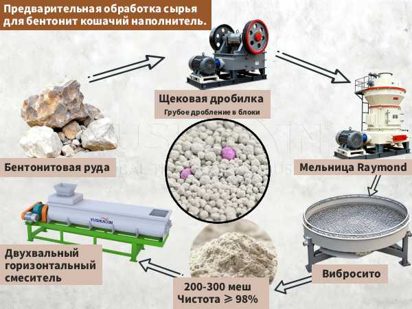 Предварительная обработка сырья для бентонит кошачий наполнитель.