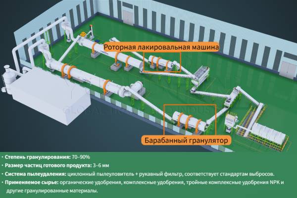 - Оборудование должно обеспечивать стабильное производство высококачественных сложных удобрений и возможность переключения между различными формулами.
